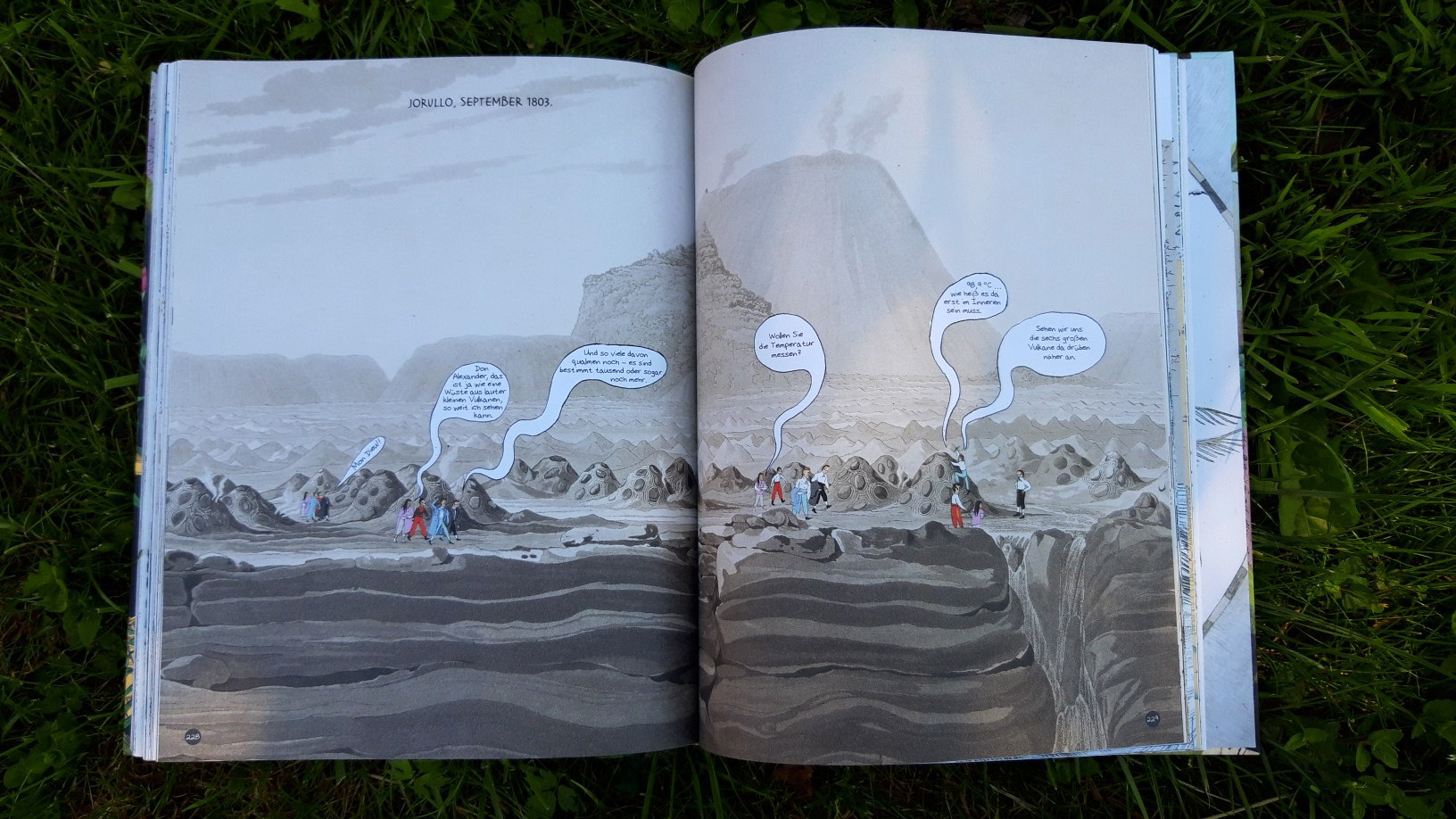 Im Buch wechseln sich lockere Dialoge, die einzelne in Briefen, Erzählungen oder Aufzeichnungen verbriefte Geschehnisse wiedergeben, mit längeren Textpassagen, in denen Humboldt seine Forschungen erläutert. Es gibt sogar einen Running Gag (José, das Barometer!). Aber allein durch die geschilderten Handlungen und Entscheidungen Humboldts, der alles am eigenen Körper erfahren und testen musste, habe ich ein lebendiges Bild von diesem außergewöhnlichen Menschen bekommen. Trotz des Comic-Stils ist das Buch eine anspruchsvolle Lektüre, die ich über eine längere Zeit hinweg quasi häppchenweise als Einschlaflektüre gelesen habe.